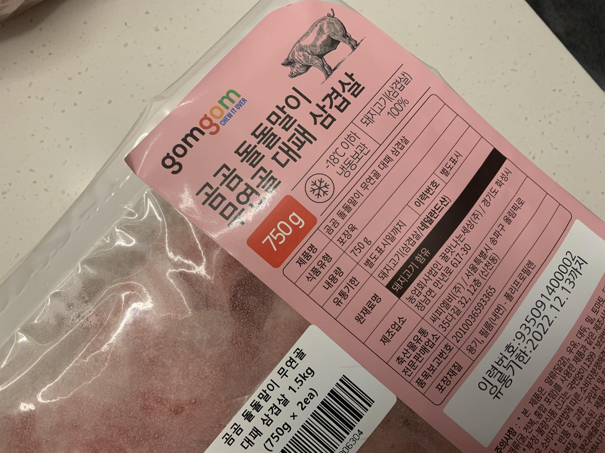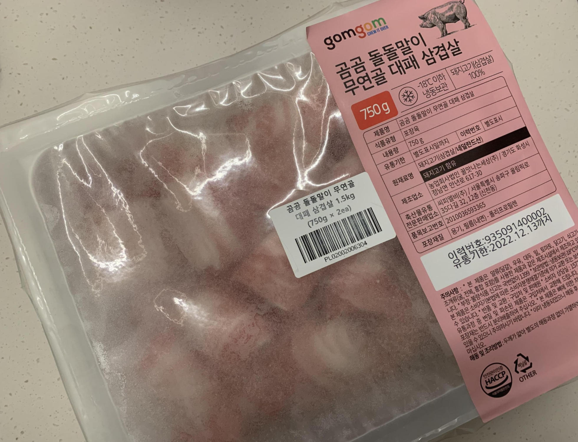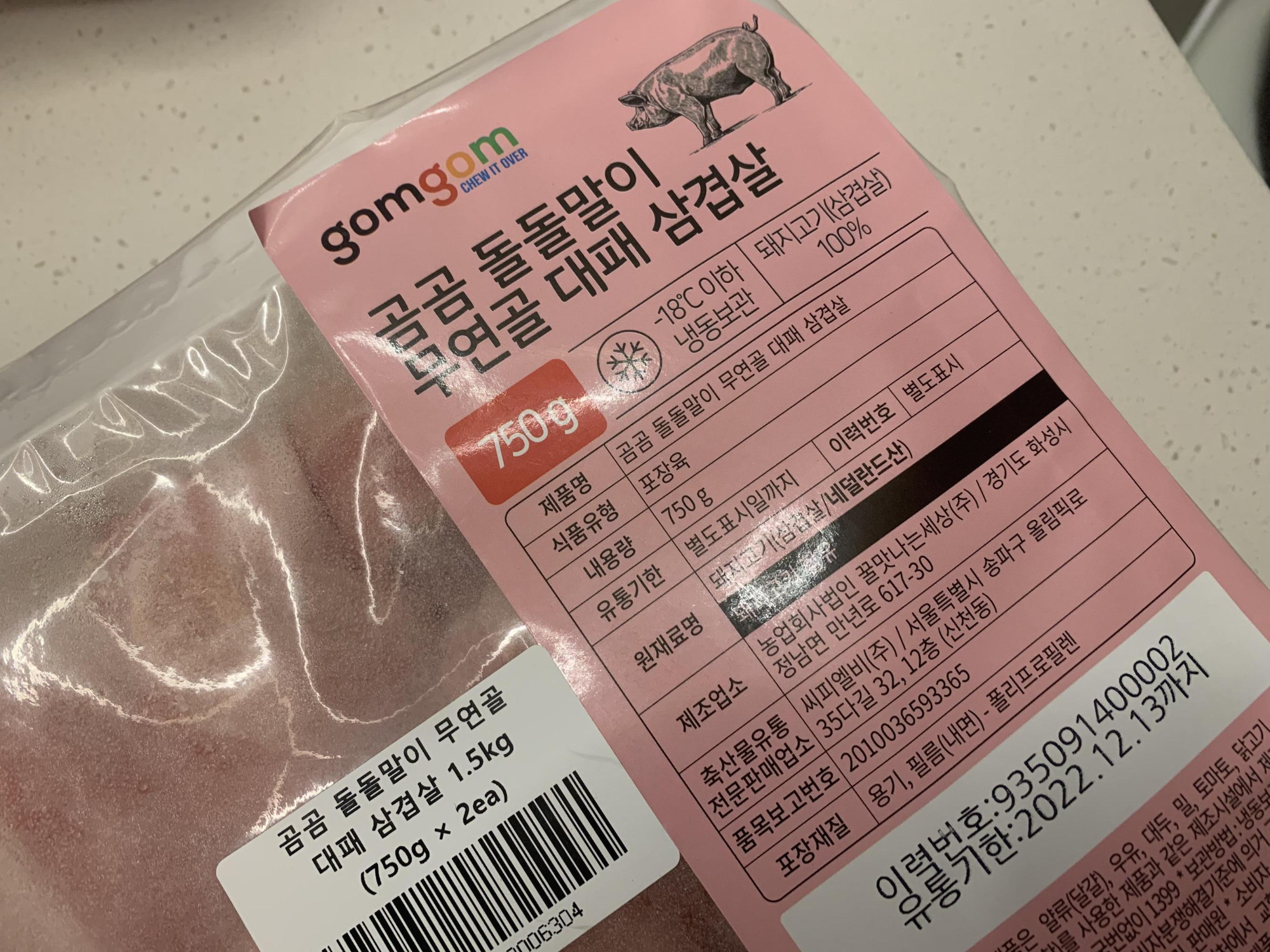 750g 두팩에 18,720원으로